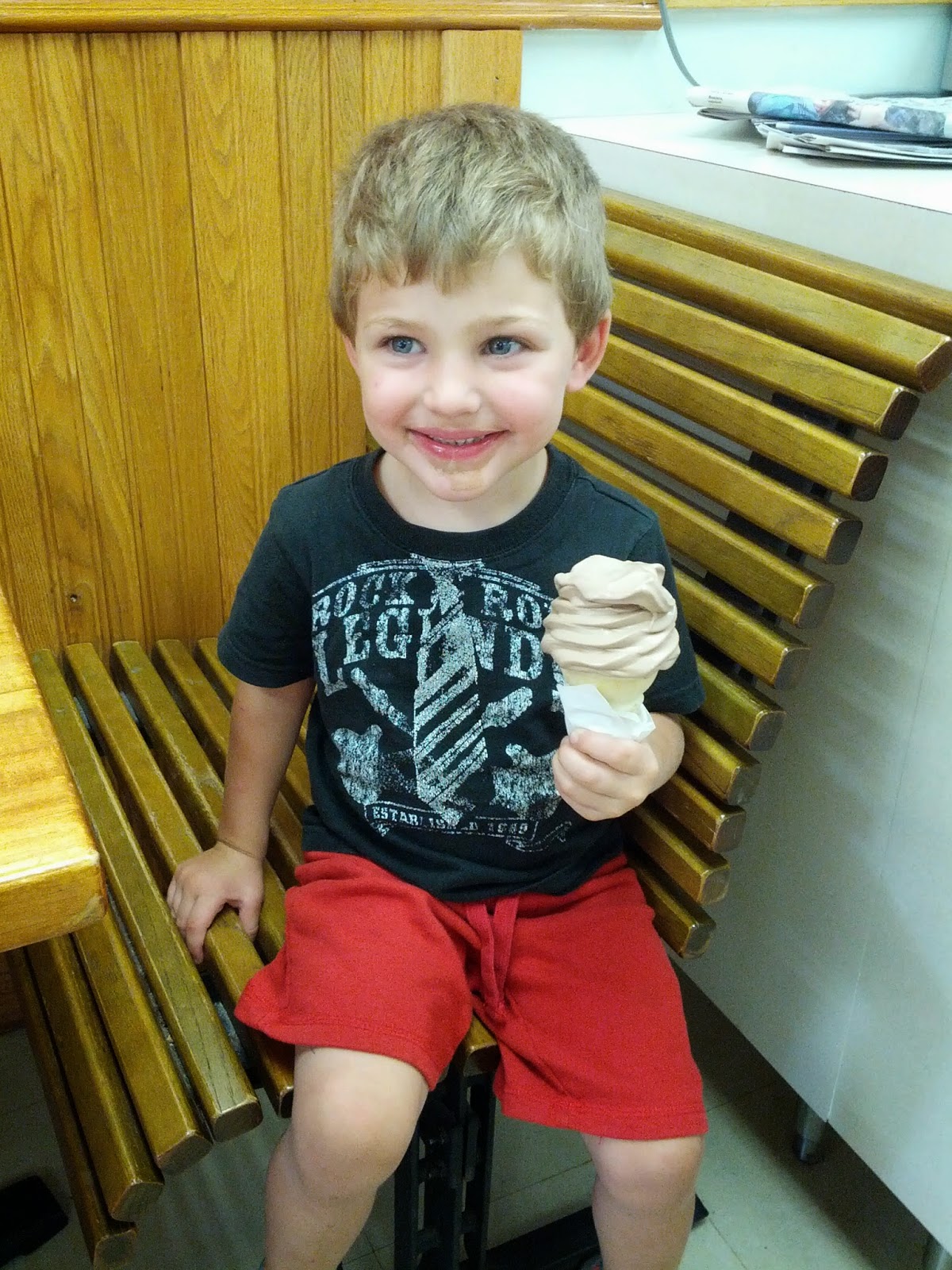 A nearby ice cream shop has done this "Free cone if your name is ..." for as long as I have lived here. When we drive by, it's always fun to take a quick glance and see what the names of the day are. One morning a few weeks ago, a friend alerted me that the boy name of the day was Milo! And even though I was exhausted and going on day 6 of parenting solo (with Nick camping in Canada), I could not pass up the opportunity...mostly just for this picture :)